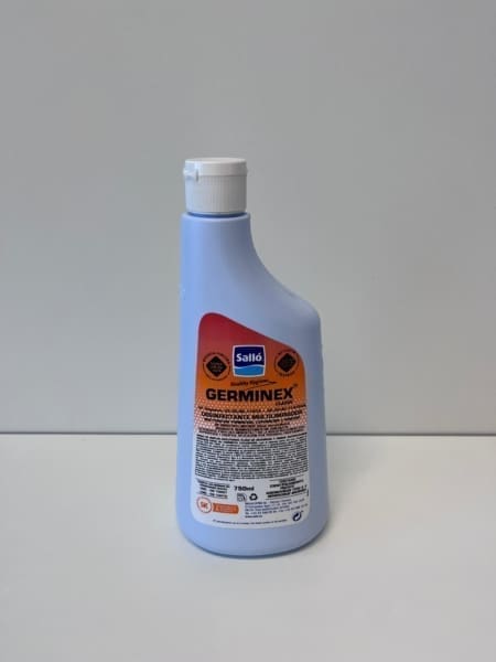 Limpiador desinfectante bactericida-fungicida de superficies y equipos, en una sola operación. No es tóxico, no oxida superficies metálicas, y no ataca el aluminio ni otros materiales sensibles a productos corrosivos y al cloro. Uso en industria alimentaria, colegios, comedores, hoteles, gimnasios, vestuarios, etc.